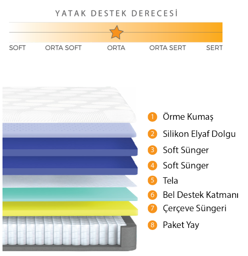 - Silikon Elyaf: Silikon elyaf, ekstra konfor sunar ve yatağın rahatlığını artırır.